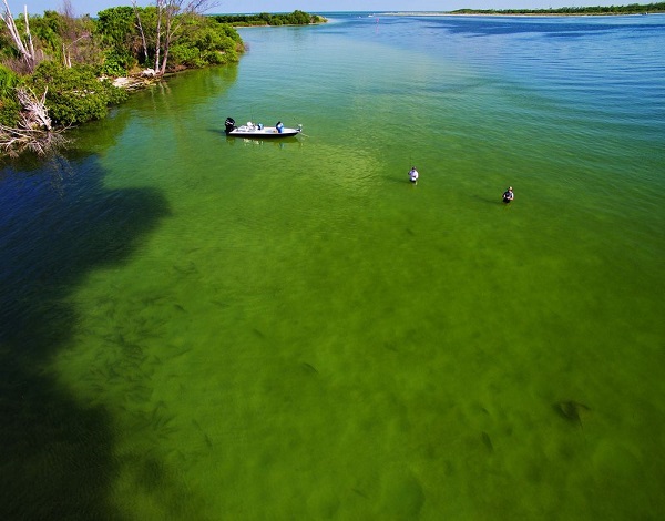 “As far as spooking fish, whether it’s bonefish or redfish tarpon, they don’t seem to care about the noise and vibration of the drone hovering over them. That surprised me,” Rob Fordyce says. “Even big tarpon in clear water will allow the drone to get 10 feet above them before even hinting that they’re bothered. But if the shadow of the drone goes near the fish, it will spook them. Keep in mind where the sun is in reference to the drone and the fish.”